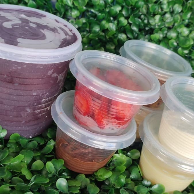 1 Litro de Açaí acompanhado de Leite Condensado, Leite Em Pó, Creme De Ninho, Morango, Nutella, Banana, Paçoca, Granola e M&M para se Deliciar com a Familia!!!