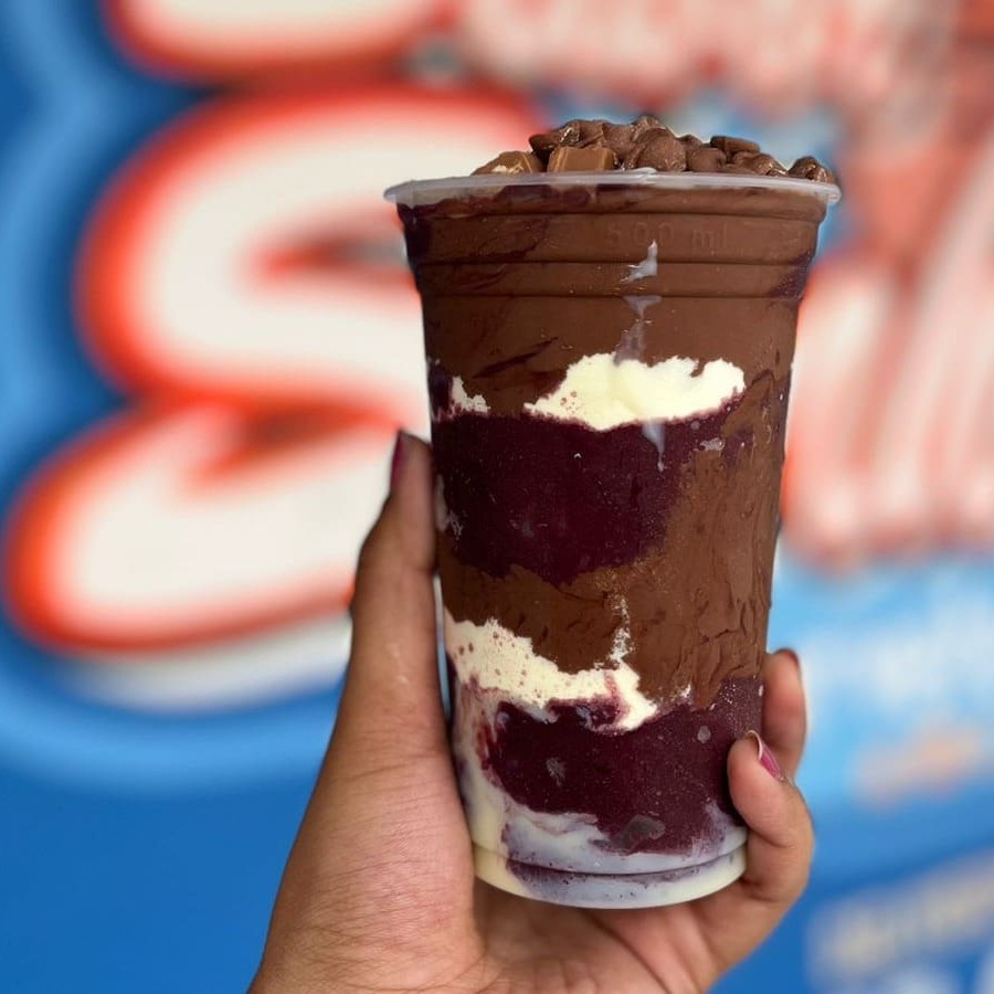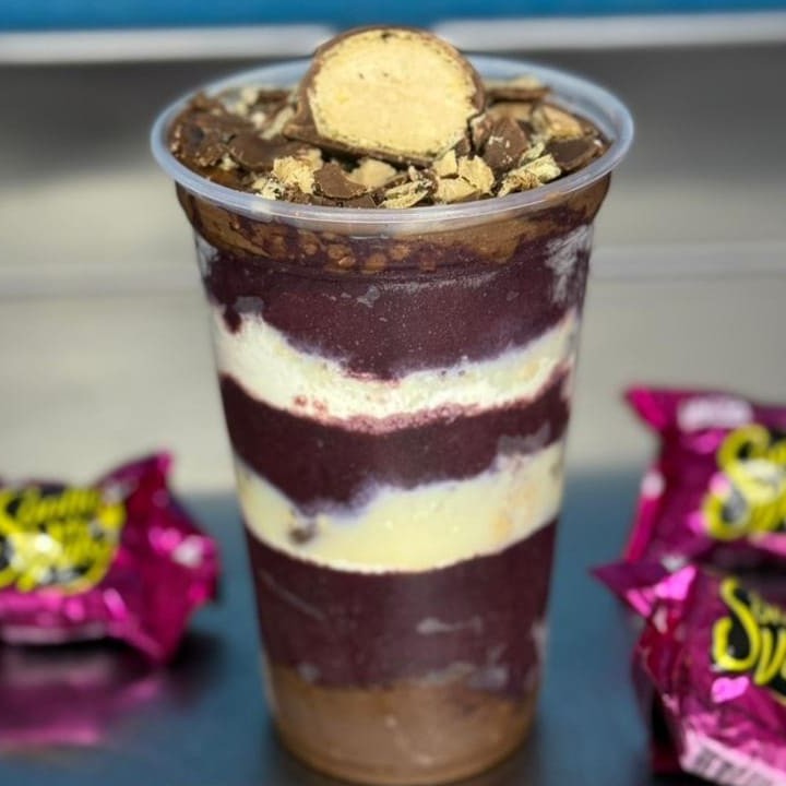 Creme de Açaí super cremoso com Leite Condensado e um delicioso Creme de Amendoim e muita Paçoca!!!