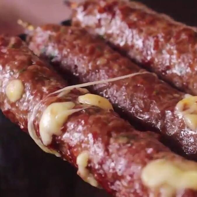 Nosso espetinho de Kafta Recheada é uma verdadeira explosão de sabores! O recheio de cheddar ao centro, torna essa combinação ainda mais perfeita. O espeto é assado na hora, chegando quentinho e saboroso através da embalagem térmica.