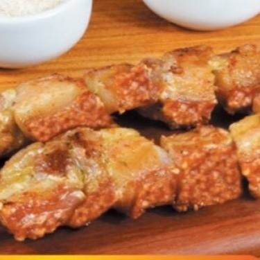 Delicioso Espetinho de Porco, bem temperado e saboroso. O espeto é assado na hora, chegando bem grelhado e quentinho através da embalagem térmica.