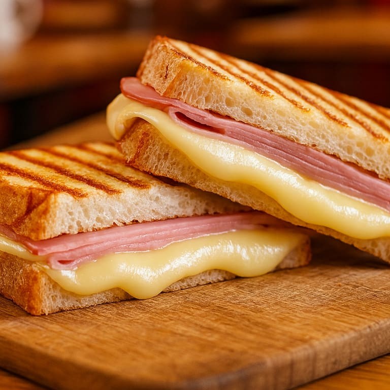 Pão, 2 fatias de queijo, 2 fatias de presunto.