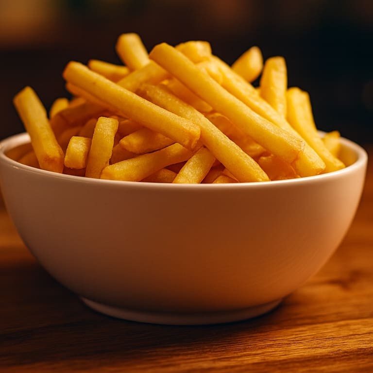 Uma porção generosa de fritas veganas, douradas e crocantes, feitas sem nenhum ingrediente de origem animal. Perfeitas para compartilhar, acompanhar seu lanche favorito ou saborear sozinhas com muito prazer!