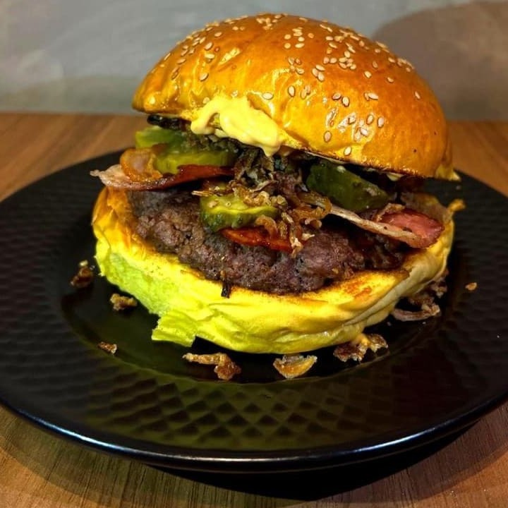 Pão de Brioche selado na manteiga, generosa camada de Molho Chipotle, aquele amarelinho, picante e super gostoso :) , Crispy de cebola noviinho e barulhento de tão crocante, Blend Bovino de 120g preparado cuidadosamente ao ponto, com o tempeiro especial do cheff e um toque de Mix de Pimentas. Finas e Crocantes Fatias de Bacon fazendo companhia ao protagonista da vez, Picles de Pepino em conserva especial surreal de maravilhosa! Inclusive, você sabia que o Picles ajuda a promover o sistema digestivo, possui uma grande concentração de Vitamina C, ajuda a absorver ferro dentre outros benefícios ? Ah fala sério, veio pedir um lanche e ainda fez uma descoberta hahaha