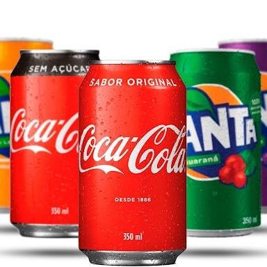 Várias opções para você escolher. Temos Coca-Cola Original, Coca-Cola sem Açúcar, Fanta Laranja, Fanta Uva, Fanta Guaraná, Sprite Original, Guaraná Kuat, Schweppes Citrus e Schweppes Tônica.