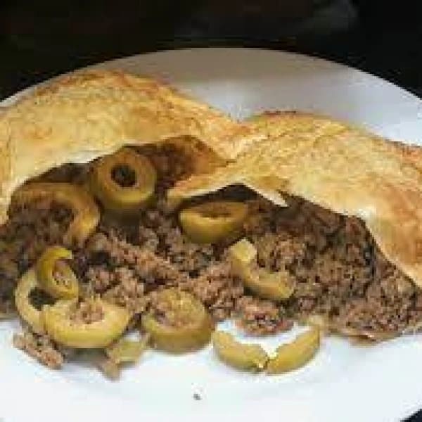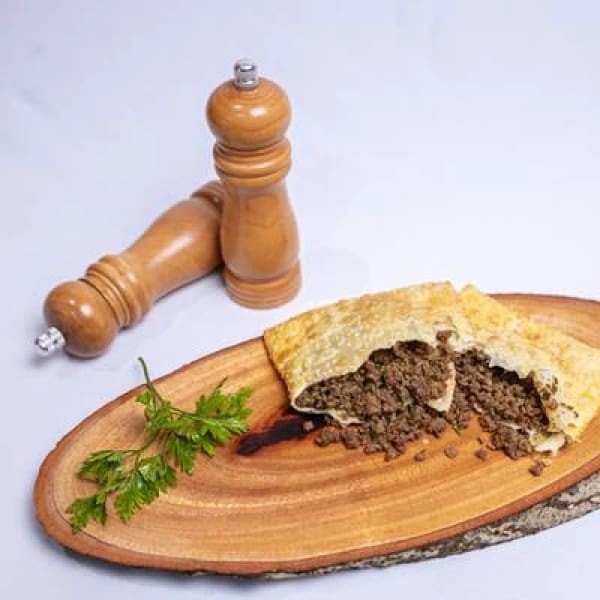 Delicioso pastel de carne moida bovina refogada com cebola e batata.Tamanho 12cm. Contem Glútem. Massa Tradicional Vegana.