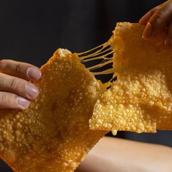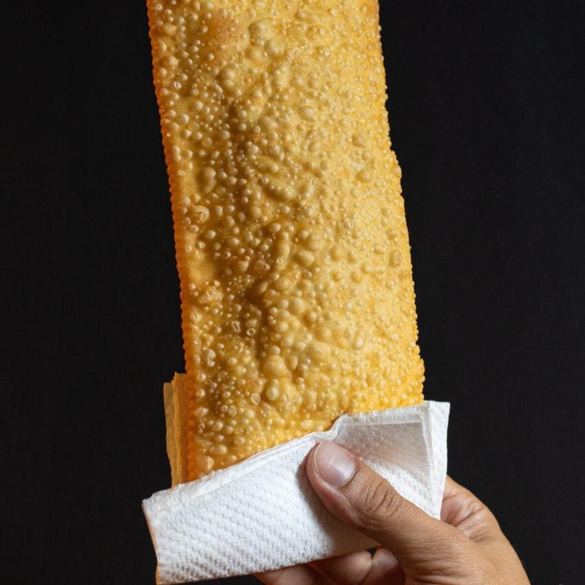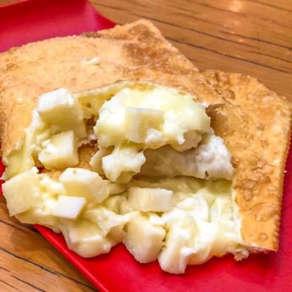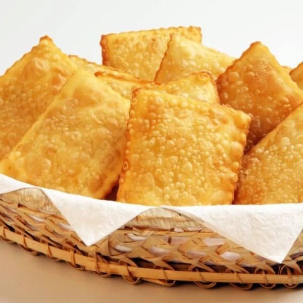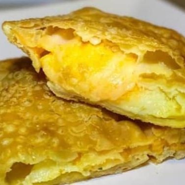 Delicioso e suculento Pastel de Queijo canastra com muçarela. Tamanho 12cm. Contem Glútem. Massa Tradicional Vegana.