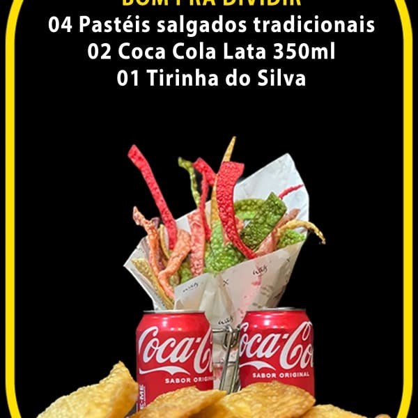 Bom Para Dividir - 4 Pasteis Salgados + 2 Coca Lata + Mentira Do Silva