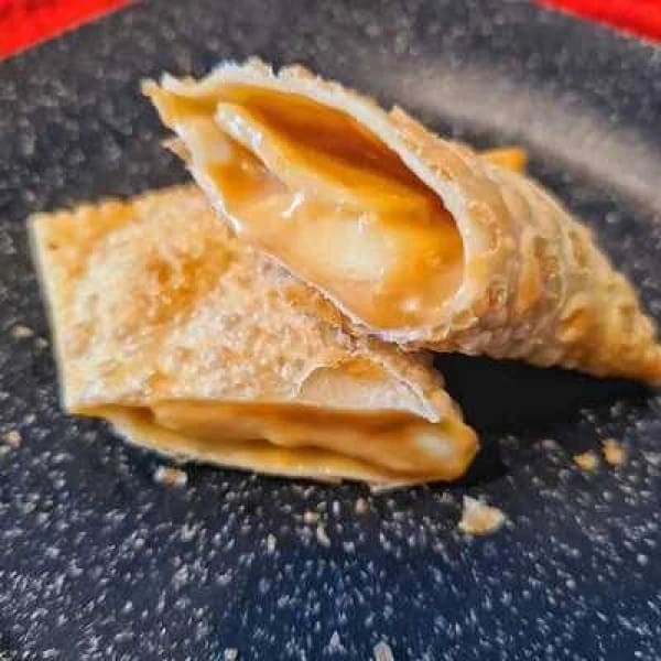 Deliciosa combinação de banana com leite condensado e um toque de canela. Pastel de 12cm. Massa tradicional vegana. Contem glutem