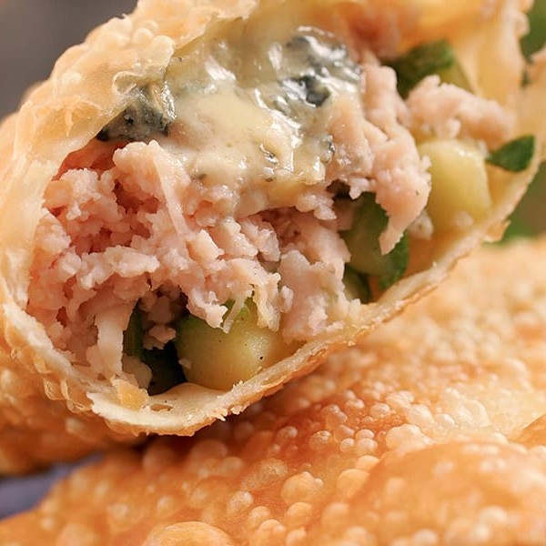 Pastel de frango diferenciado! Feito no creme branco com muita cremosidade e sabor. Tamanho 12cm. Contem Glútem. Massa Vegana.