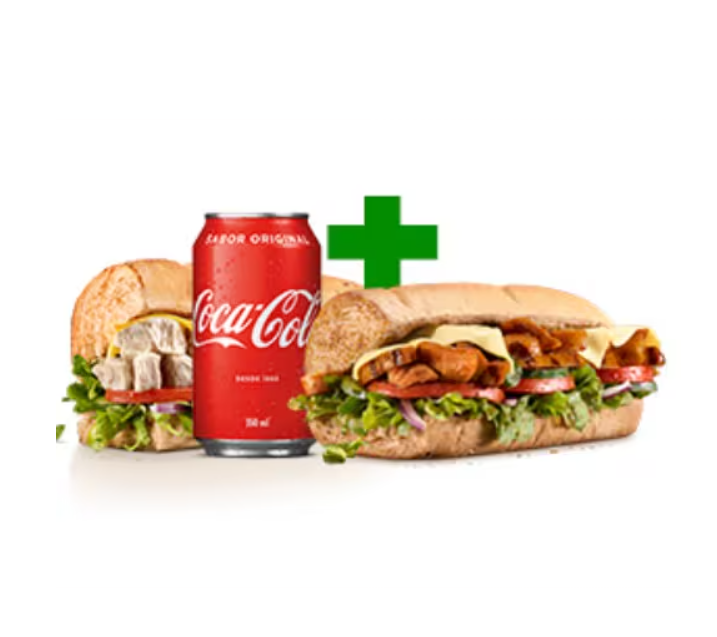 Escolha seu sanduíche de 15cm com sua proteína favorita (Steak Churrasco ou Frango ou Frango Empanado), escolha até 2 vegetais e 2 molhos de sua preferência + 1 bebida + 1 Acompanhamento. Imagens Ilustrativas