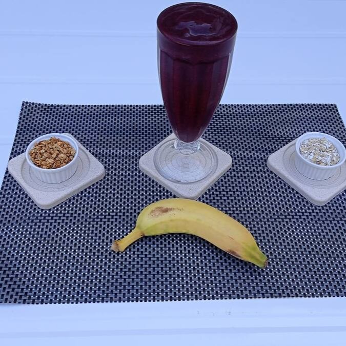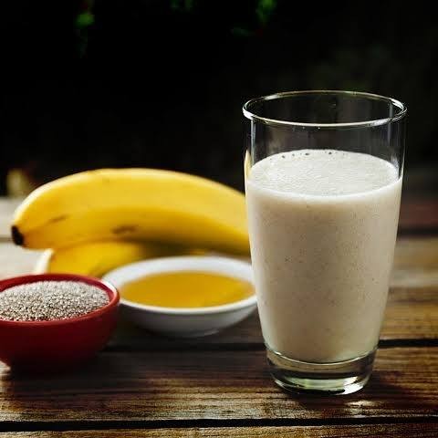 Deliciosa vitamina de banana batida com leite,aveia e açúcar.