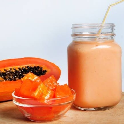 Vigorosa vitamina de mamão batida com leite e açúcar.
