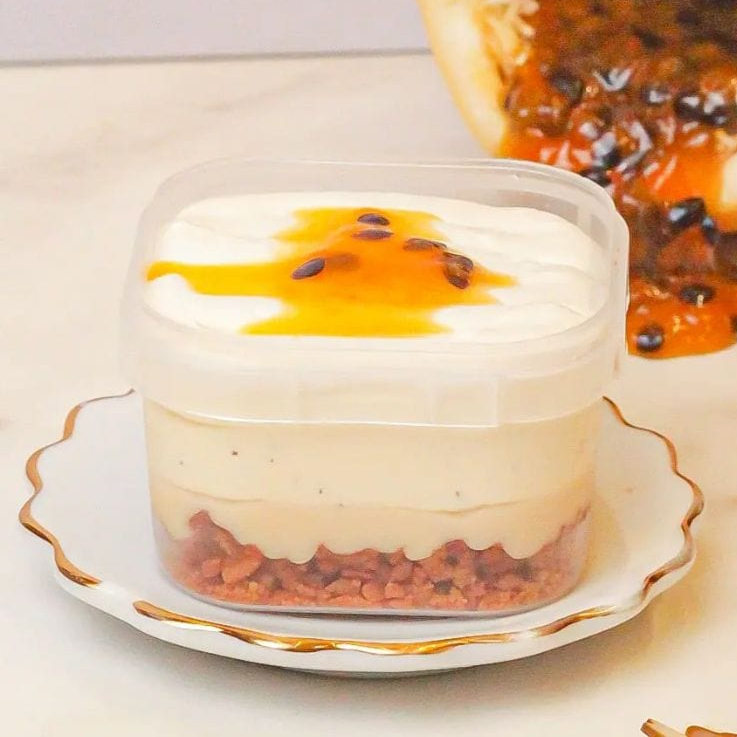 Farofinha crocante amanteigada de bolacha, camadas de brigadeiro de ninho, mousse de maracujá artesanal azedinho na medida certa e finalizado com nossa mouse de ninho. (Doce é preparado no pote de 150ml)