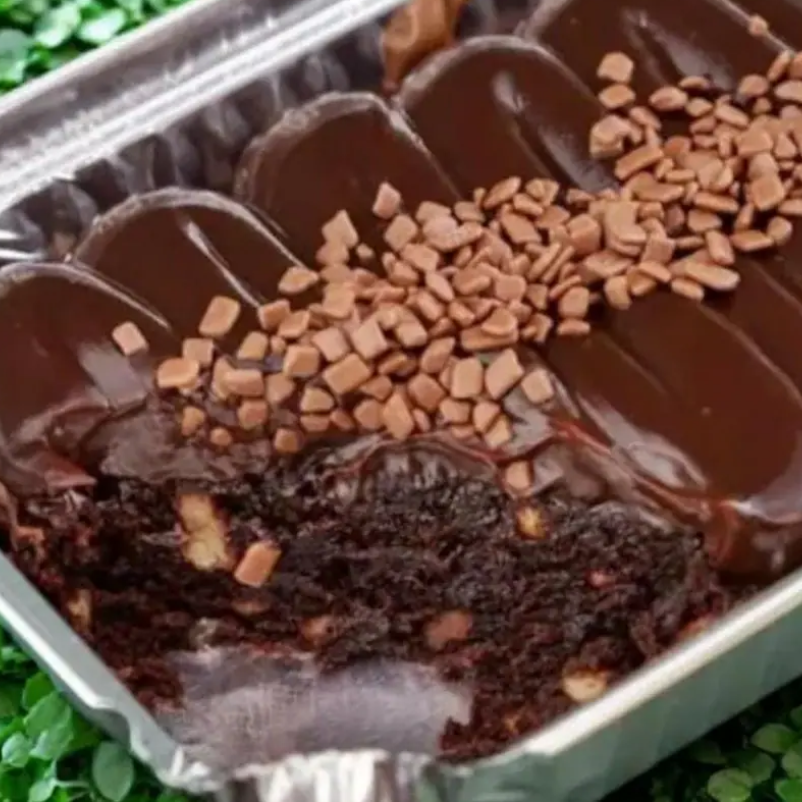 Nosso delicioso brownie bem chocolatudo, coberto com brigadeiro de chocolate e finalizado com granulé. (Peso aproximado 220g)