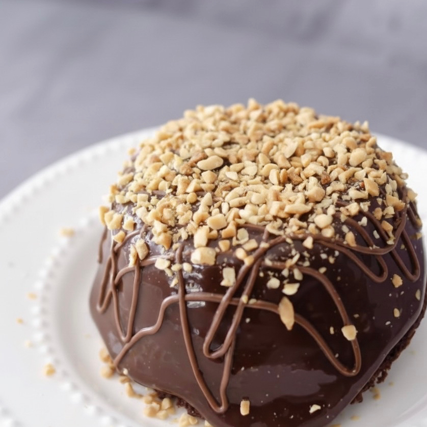 Deliciosa massa de chocolate 40% cacau bem molhadinha, bastante do nosso brigadeiro blend super cremoso e finalizado com granulé meio amargo.