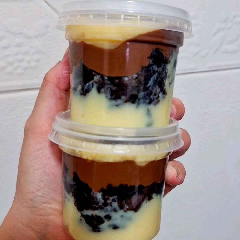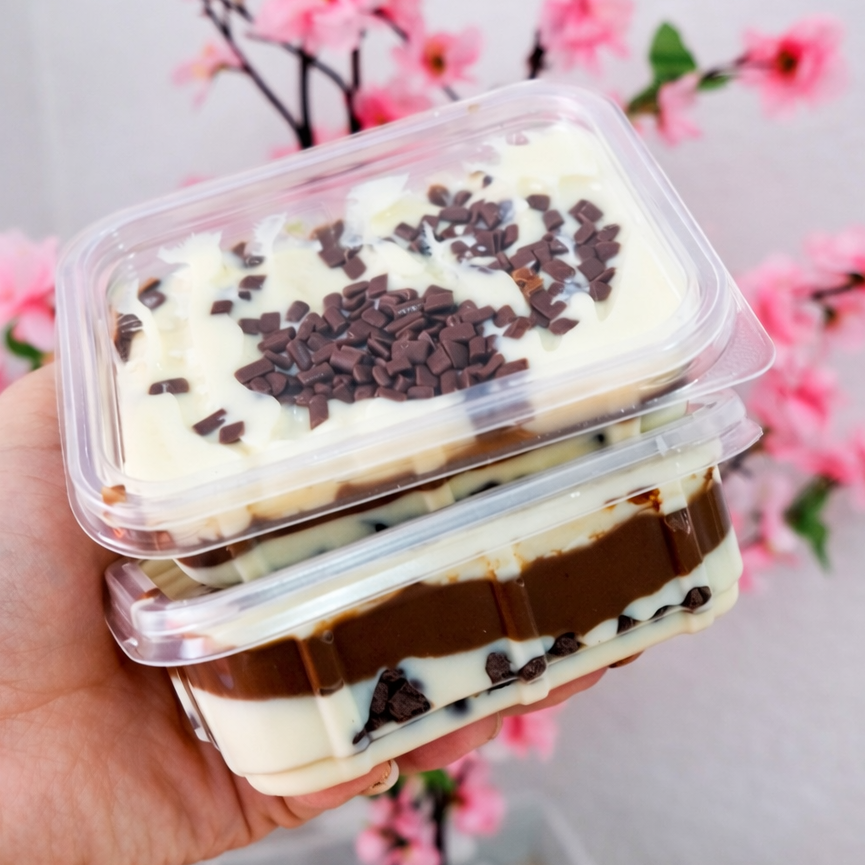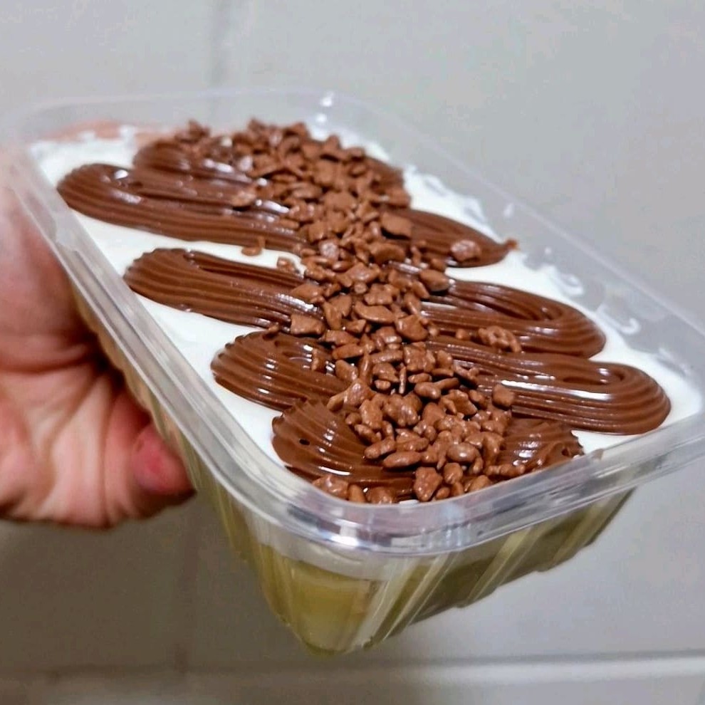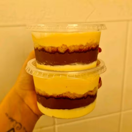 Bolo no pote com camadas de creme de Ninho, bolo branco e Nutella pura Serve 1 pessoa