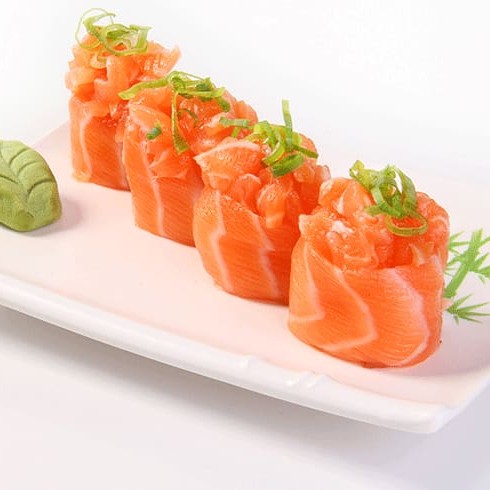 4- Sashimi, 4-Sushi salmão, 4-Sushi skin, 4-Higaware, 8-Uramaki salmão grelhado, 8-Maki Salmão