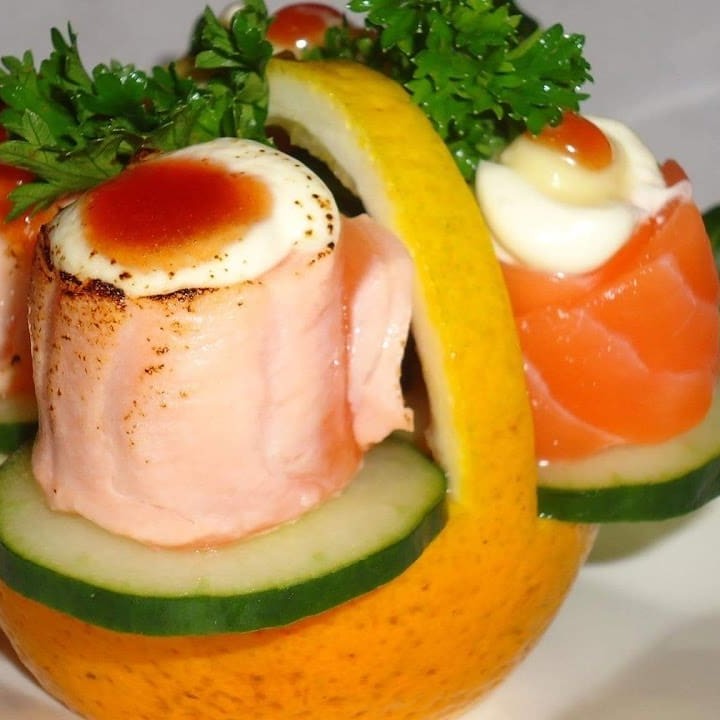 Fatia de Salmão,Camarão, Cream Cheese Maçaricado
