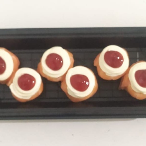 Salmão, cream cheese, cebolinha, alho poró, geleia de pimenta biquinho