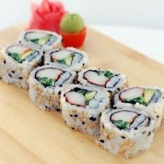 Meia Folha de Alga, Arroz e Recheio Por dentro de Manga, Kani e Pepino