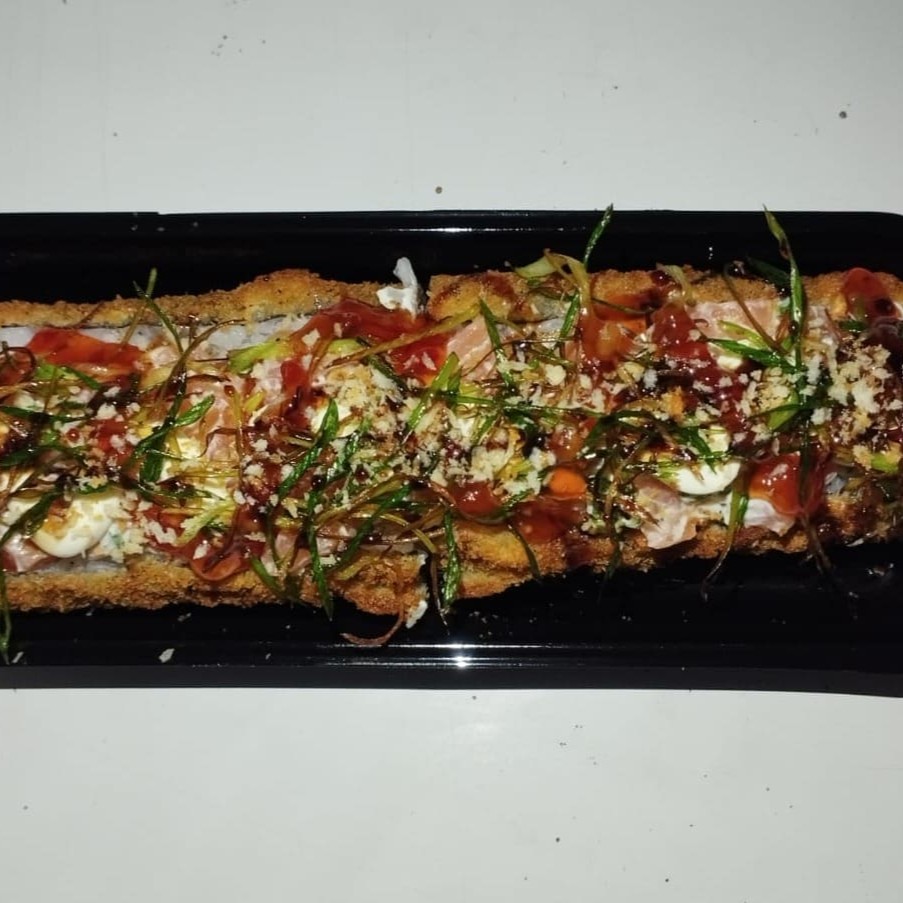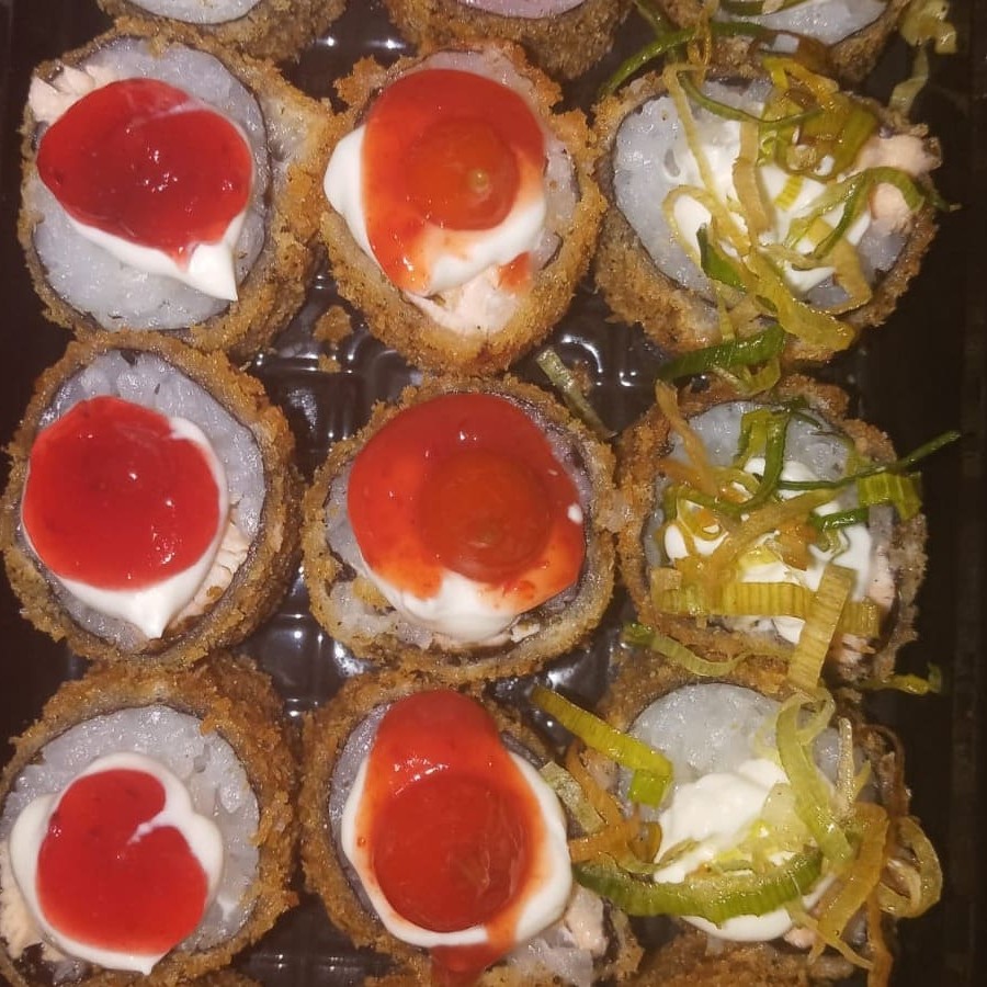 Maki de salmão, creme cheese, cebolinha e Empanado e Frito