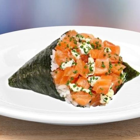 Meia folha de alga, Sem Arroz, salmão em cubos e cream cheese