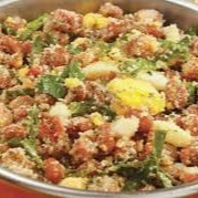 Arroz, fritas,tropeiro , salada alface e tomate.