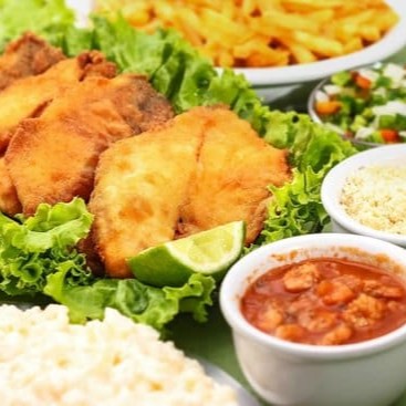 250 grs de camarão empanado,250 grs de tilápia,250 grs de traíra,400 grs de fritas