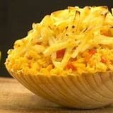 Arroz com camarão , legumes na manteiga e molho de ervas.