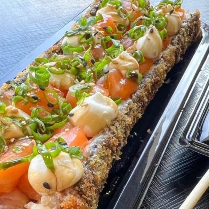 Sushi - 10 Hot De Salmão Grelhado Com Creamcheese E Crispy De Alho Poró - Japa