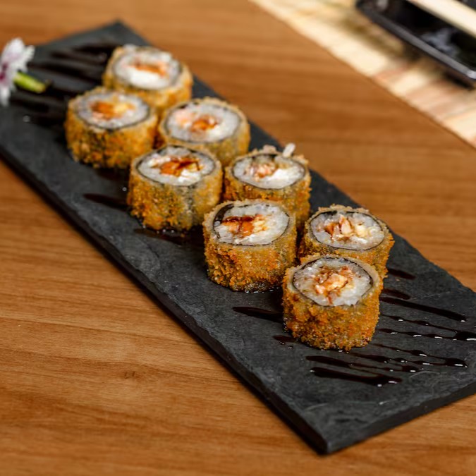 10 unidade de maki de salmão com creamcheese empanado e frito