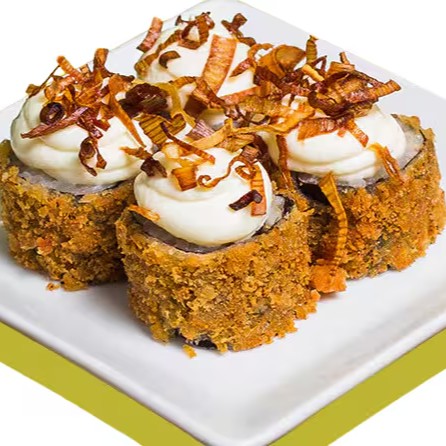 Da Maki de salmão grelhado empanado e frito com creamcheese e crispy de batata doce