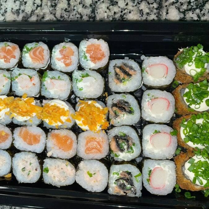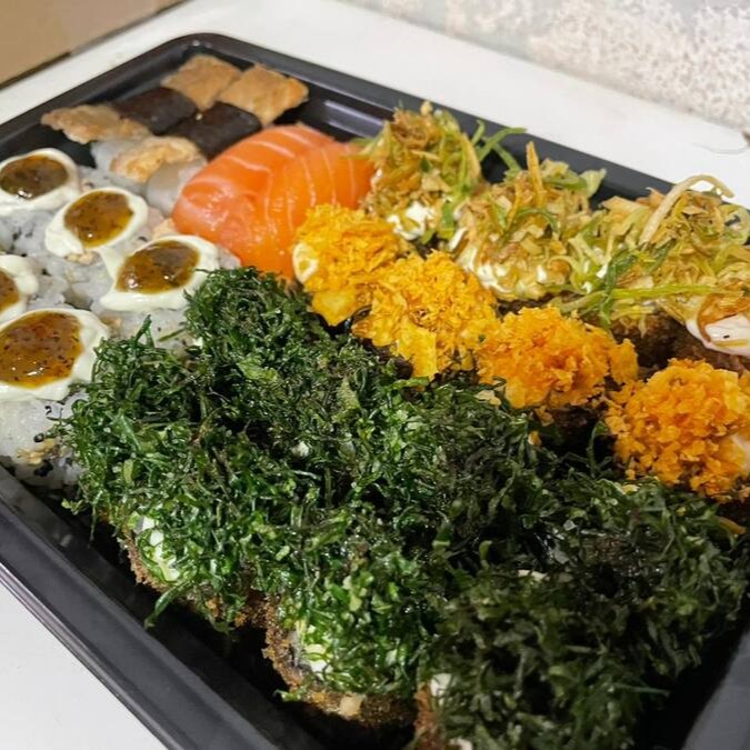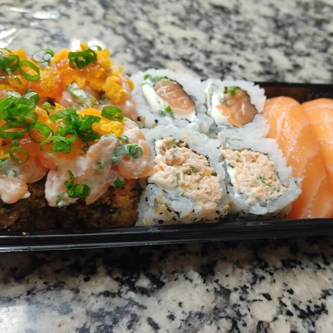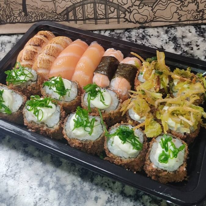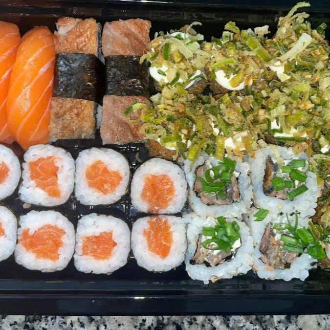 Descubra a explosão de sabores do nosso 'Combinado 44 Peças Especial', um dos destaques dos lançamentos do mês de março. Este prato reúne 9 Uramakis Filadélfia, delicadamente enrolados com salmão fresco e cremoso cream cheese. Ele também apresenta 9 Makis de Salmão, uma verdadeira delicadeza japonesa. Acompanham ainda 4 Sushis de Salmão, preparados com uma fatia generosa de salmão sobre o arroz, e 4 Sushis Skin, com a pele do peixe crocante. Por fim, se delicia com 9 Hots Crispe de Couve, onde a couve crocante se funde com o arroz, e 9 Hots de Bacon, uma mistura surpreendente de sabores. Uma verdadeira viagem gastronômica te espera!