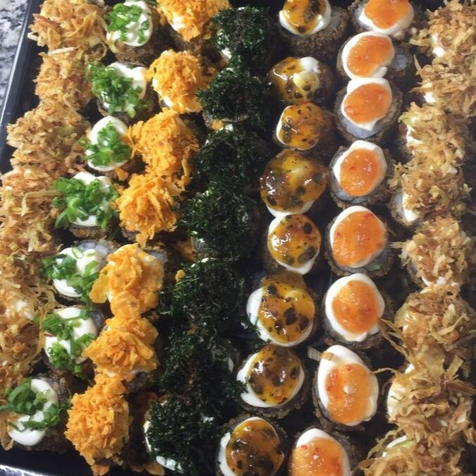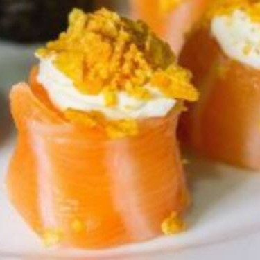 Sashimi de Salmão envolvido em arroz, com cobertura Cream Chesse e Geleia de Maracuja .