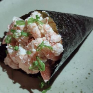 Enrolado de alga em forma de Cone recheado com arroz, Camarão, Cream Chesse e Cebolinha