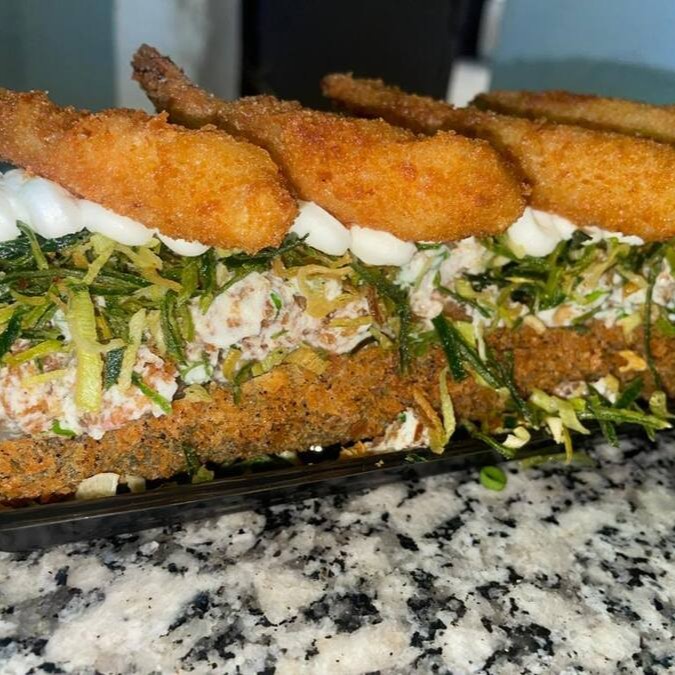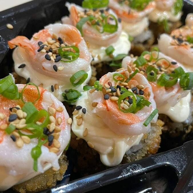 Apresentamos o 'Big Hot Holl Camarão Empanado Frito', uma das estrelas da nossa categoria 'Os Queridinhos'. Este prato é uma combinação harmoniosa de camarão suculento, delicadamente empanado na farinha Panko e frito à perfeição, cortado ao meio e generosamente recheado com tártaro de camarão, cremoso cream cheese e cebolinha fresca. O nosso toque especial fica por conta do crispe de alho poró crocante, que adiciona uma textura surpreendente. A geleia de pimenta dá um toque de doçura picante, enquanto o molho tarê proporciona um sabor umami distinto. O prato vem acompanhado de 2 sachês de shoyu e 2 de tarê para você temperar ao seu gosto.