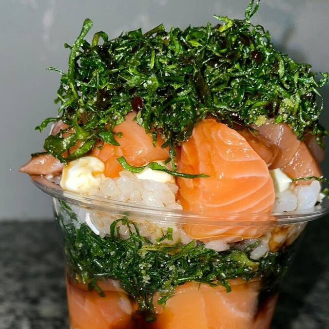 Experimente o 'Copo da Felicidade', uma novidade luxuosa do Sushi Hub. Imagine um temaki artesanalmente montado em camadas estratégicas: começa com uma base de salmão fresco, seguida por uma camada de arroz de sushi perfeitamente cozido, e uma generosa porção de cream cheese suave e cremoso. Depois, mais uma camada de salmão em cubos, fresco e saboroso, é adicionada, seguida pelo nosso irresistível crispe de couve crocante. A próxima camada é uma mistura de arroz ao cream cheese, seguida por mais salmão em cubos e uma porção adicional de crispe de couve. Para finalizar, uma dose abundante do nosso tarê infinito, adicionando um sabor doce e salgado que irá surpreender o seu paladar. Um festival de sabores e texturas em um copo!