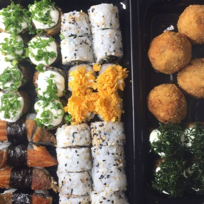 4 Niguiri de Skin + 4 Uramaki De Salmão grelhado + 4 maki de salmão grelhado + 4 hots de camarão + 4 hots de bacon + 4 hots alho poró