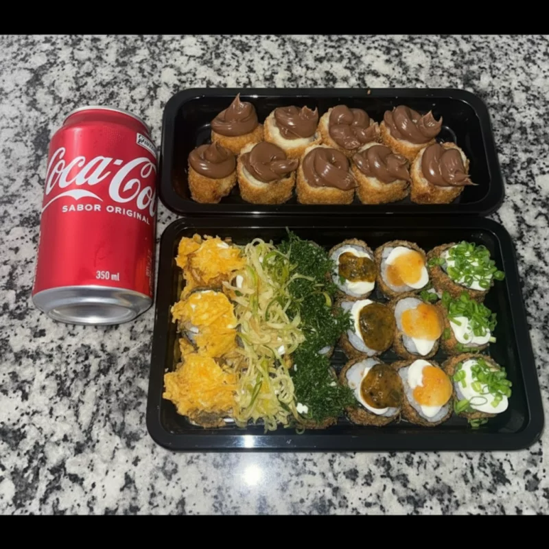 12 Peças Tradicionais +1 Temaki Hot Grelha+1 Coca Cola Lata De 350 Ml