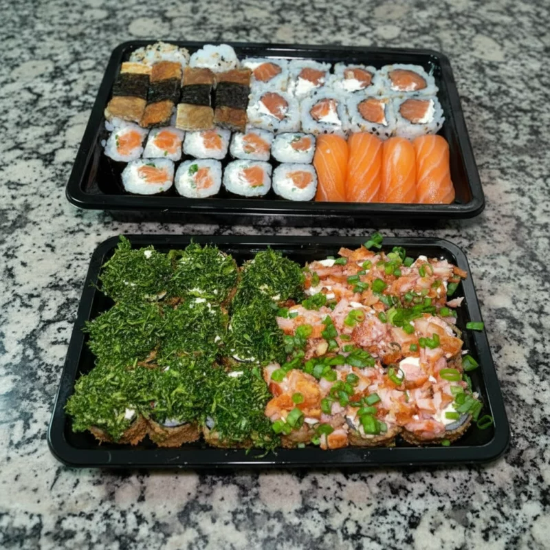Delicie-se com o nosso Combinado Skin Hub, um prato clássico de 36 peças, cada uma transbordando de sabor e textura irresistíveis. Este conjunto oferece 4 Maki de Salmão Grelhado, enriquecidos com um cremoso Cream Cheese e crocantes Doritos, proporcionando uma experiência culinária única. Em adição, conta com 8 Uramaki de Salmão Grelhado, 4 Uramaki Skin e 4 Hot de Couve, todos meticulosamente preparados para encantar o seu paladar. Inclui ainda 8 Hot Filadélfia, 4 bolinhas de salmão e 4 niguiris skin, cada um perfeito em cada detalhe, para completar essa experiência gastronômica. Por favor, note que não realizamos trocas nem alterações em nossos combinados e que a imagem é meramente ilustrativa.