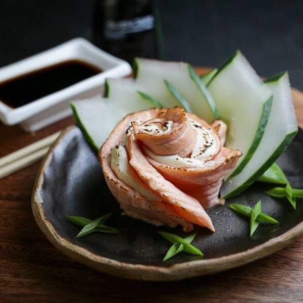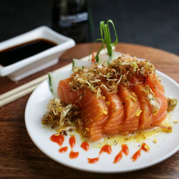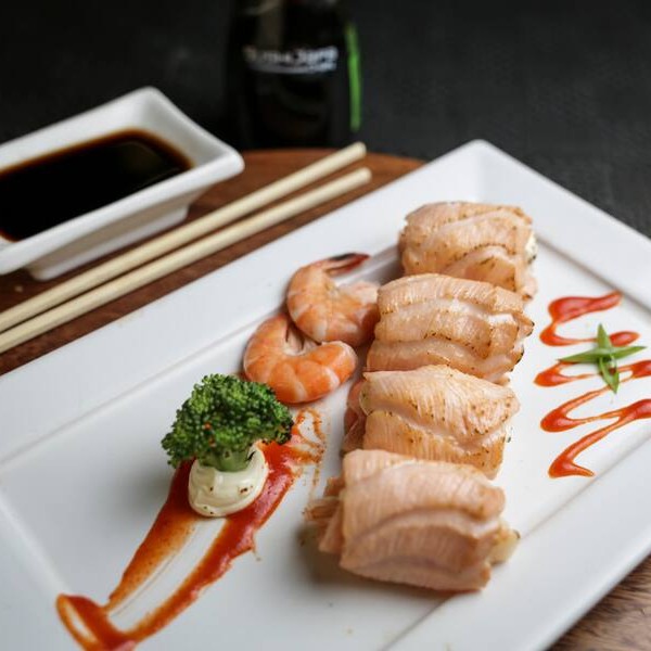 Sashimi de salmão com cream cheese falmbado