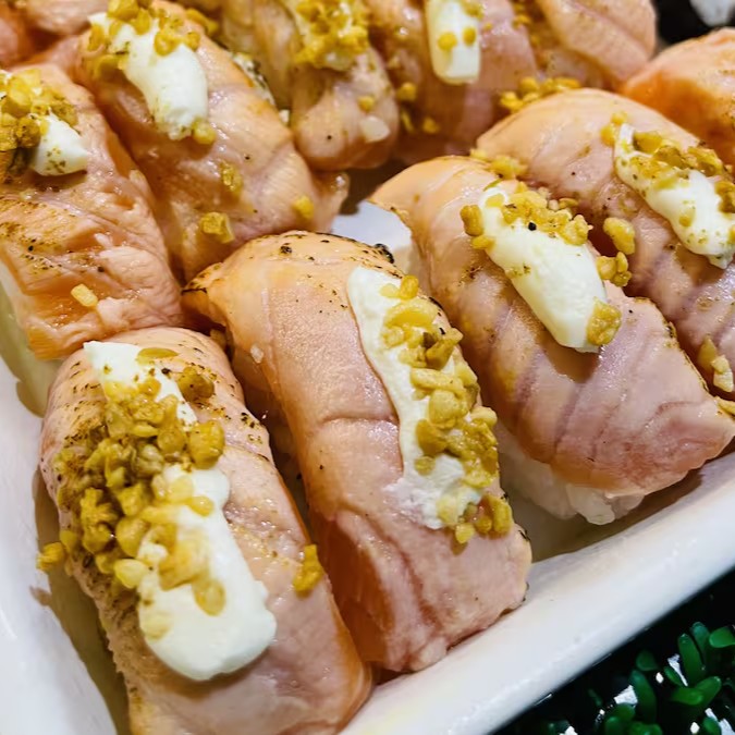*Novidade* Delicioso Niguiri Flambado com Cream Cheese e Alho Frito