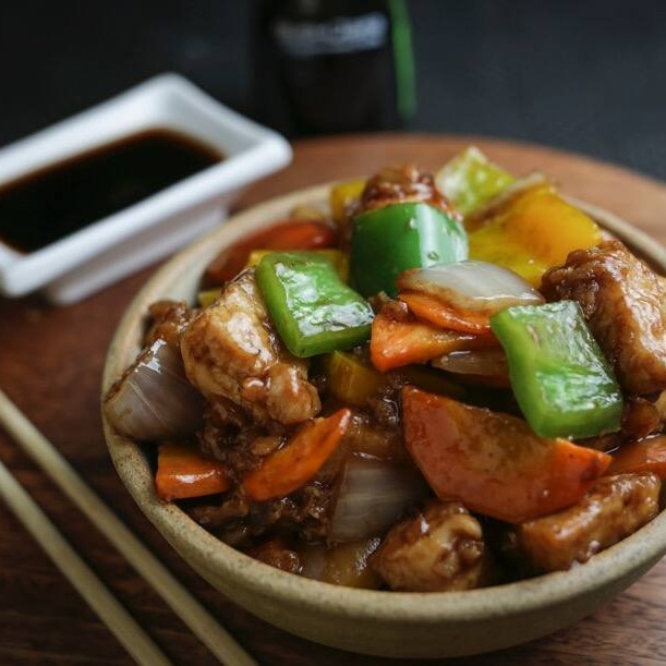 Pimentões, cenoura, cebola e filé de frango. (400ml)