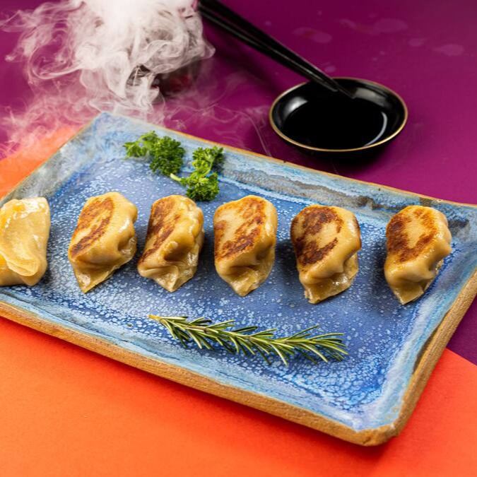 Pasteizinhos de Massa Fina Cozidos no Vapor, Recheados com Lombo Suíno, Acelga e Alho.
