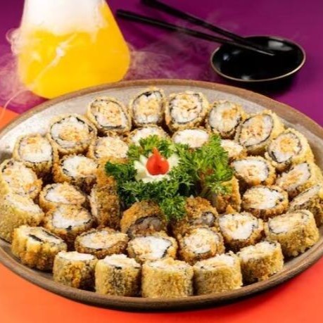 40 unidades de Sushi Empanado Recheado com Cream Cheese e Salmão