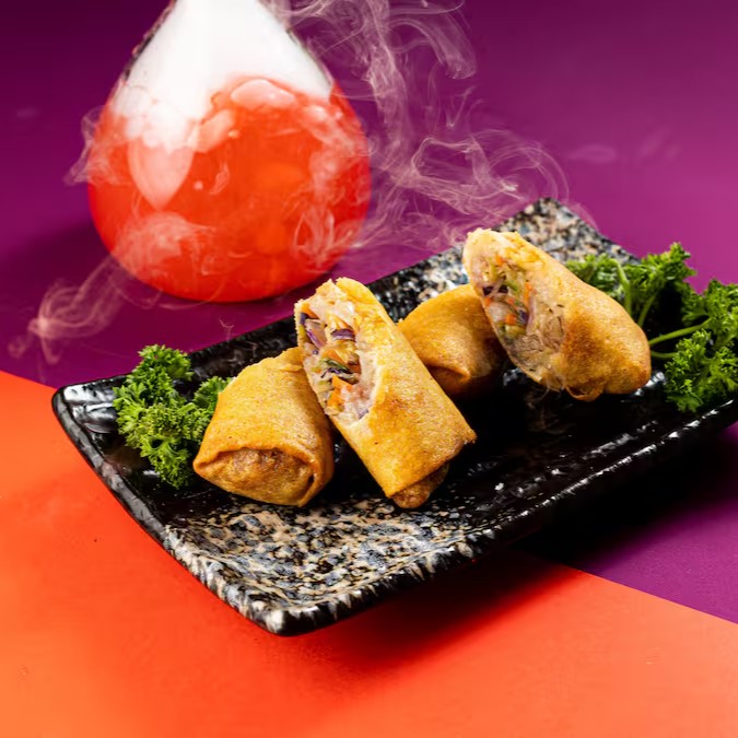 Rolinhos Primavera Recheados com Legumes Frescos, Envoltos em Massa Fina e Crocante.