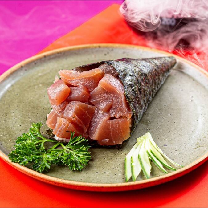 Cone de Alga Nori Recheado com Atum e Arroz.