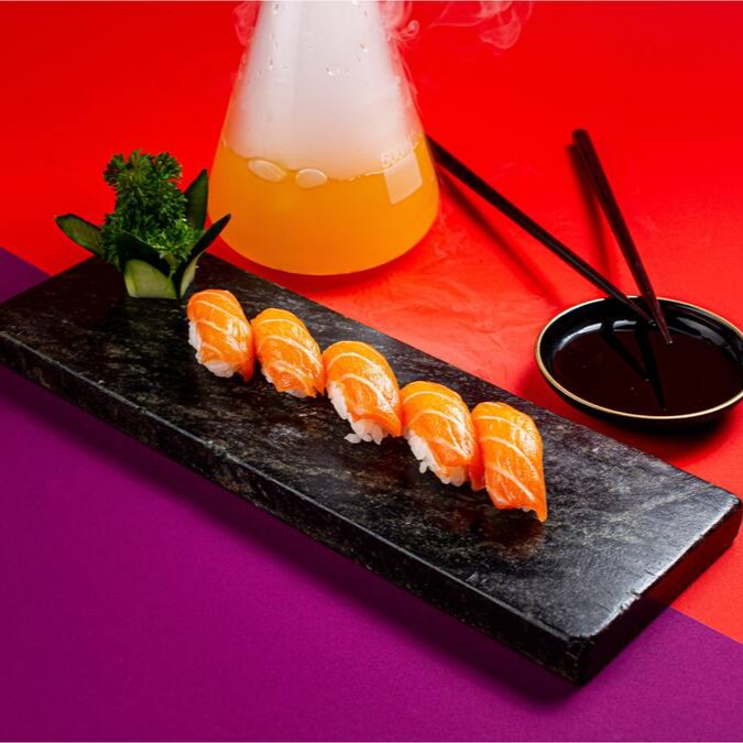 8 Maki de Salmão, 4 Nigiri de Salmão, 8 Uramaki de Salmão Grelhado e 10 Hot Filadélfia.