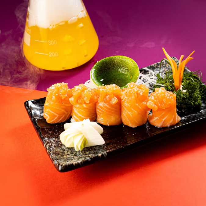 6 Nigiri de Salmão, 4 Nigiri de Skin, 8 Maki de Filadélfia, 4 Uramaki de Skin e 4 Uramaki de Salmão Grelhado.