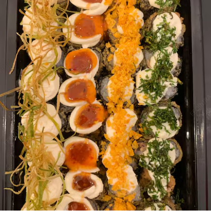 Quantidade: 4 unidades Arroz enrolado com Salmão Maçaricado coberto de Cream Cheese , Geleia de Pimenta Sweet e Doritos . *Não acompanha (Shoyu,Teriaki, Porta Shoyu e Hashi)* Obs: Não fazemos modificação no Combo. _ _ #japonesa #chinesa #shoyo #salmão #camarão #suhi #yakisoba #temaki